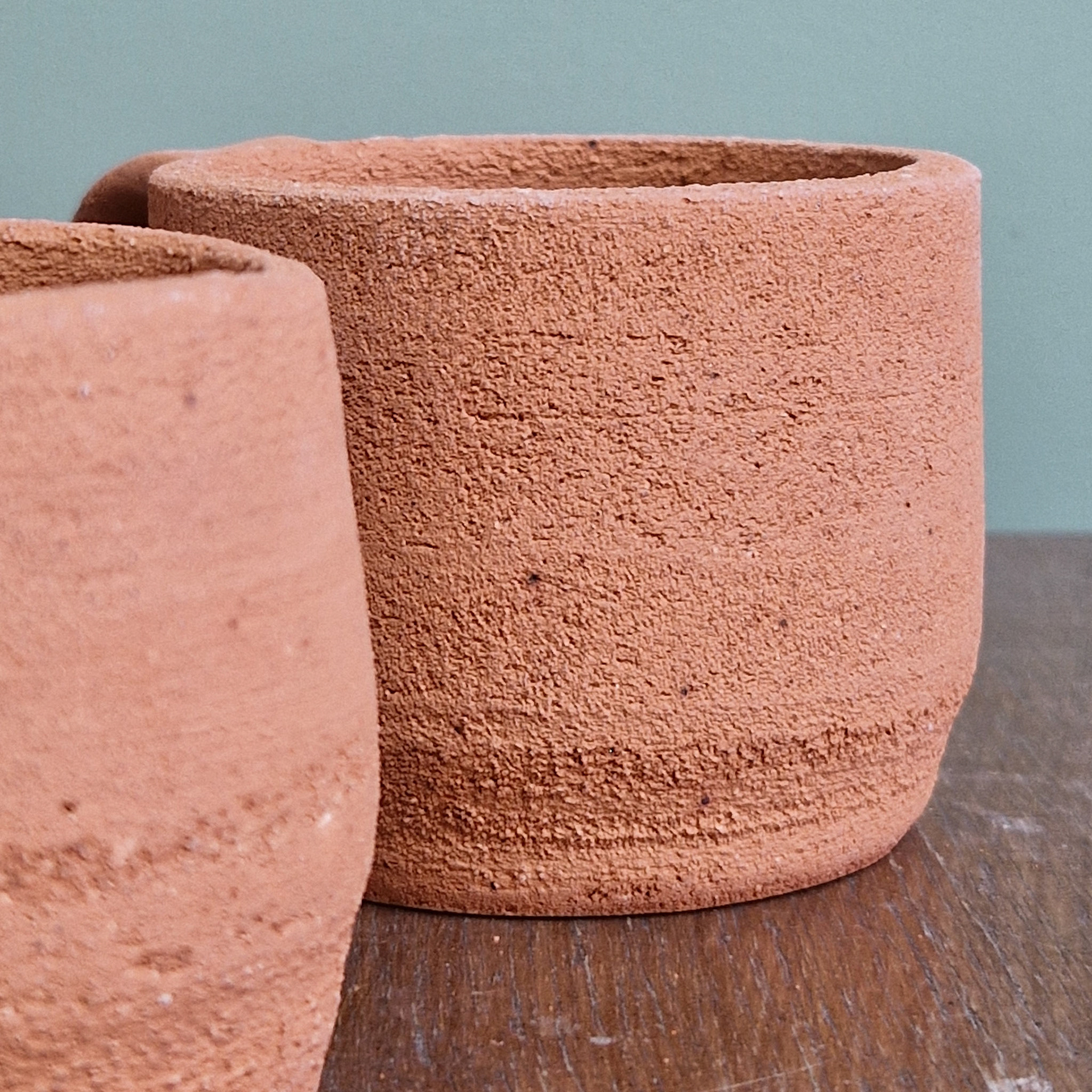 Using 'wild clay' sourced from Alderley Edge. The Edge is famed for its use as a copper mine since prehistoric timesĀ and, in test firings, the copper content in the clay lends a beautiful green tinge to neutral glazes. This first batch is wonderfully coarse and full of character.