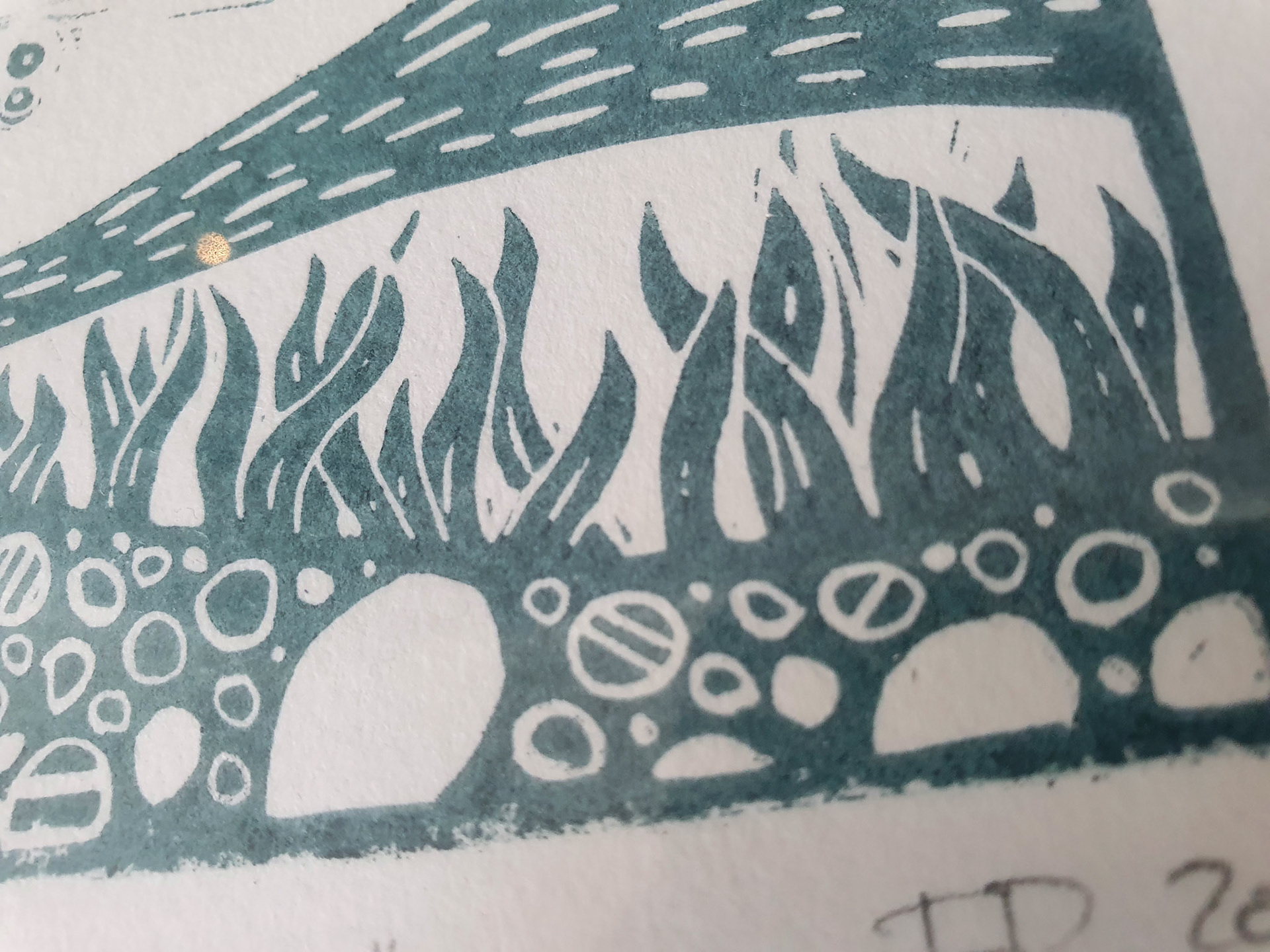 The Loch was the first print where I started to work below the surface, creating layers under the water, imagining the things out of our sight.